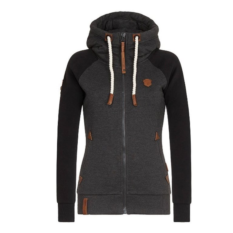 Women's hoodie with a hood and drawstrings. The hoodie features a zip fastening and two side pockets. Available in several colour options.