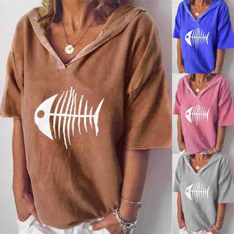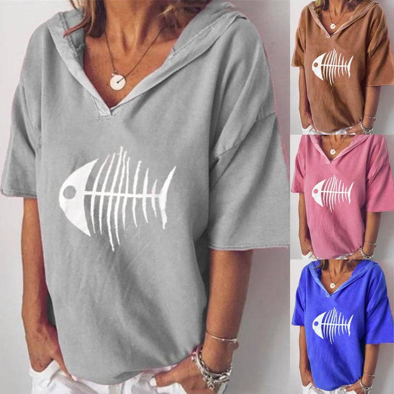 Women's hoodie t-shirt with 3/4 sleeves and hood