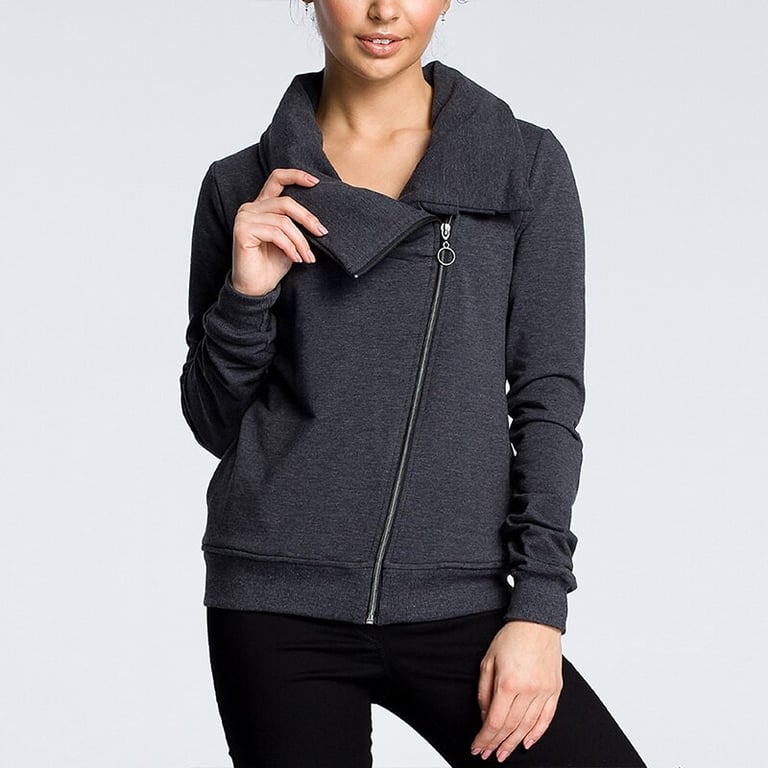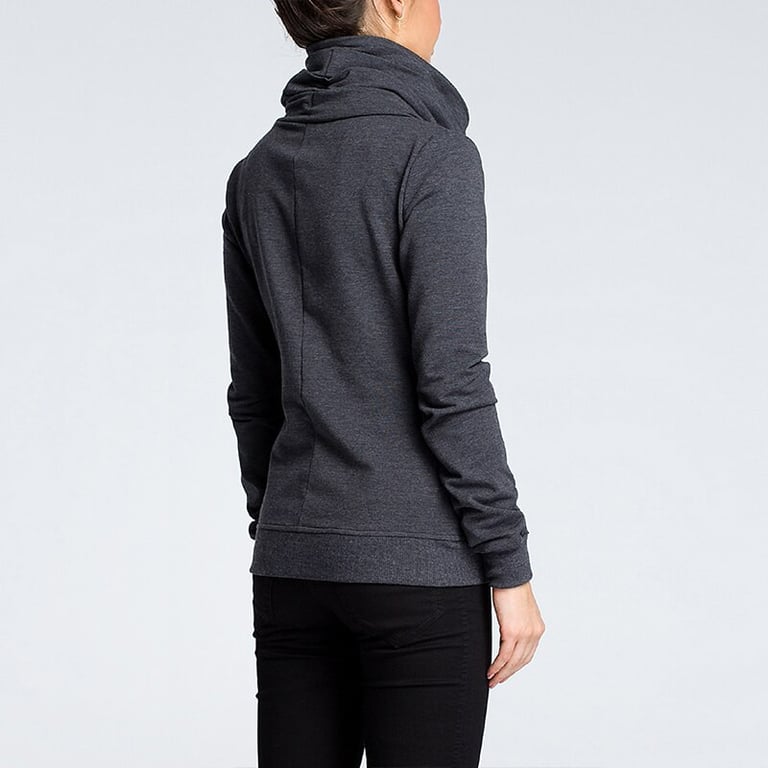 Women's sweatshirt with a high collar. The sweatshirt has long sleeves and an angled zip fastening. Two side pockets. Available in multiple colour options.