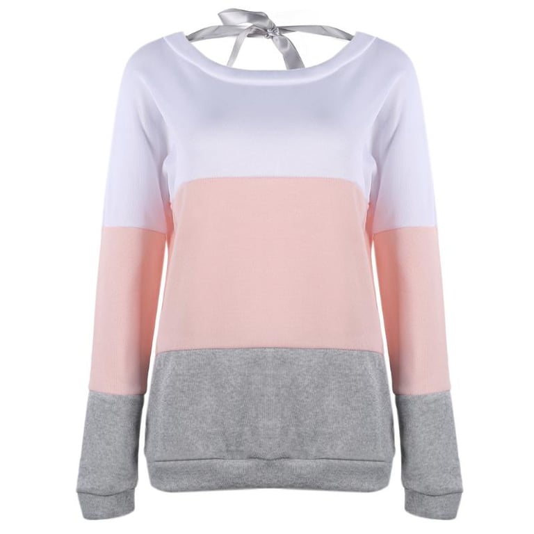 Elegant women's hoodie with a bow on the back. It features a round neckline and cut-out back. Perfect for spring and autumn.