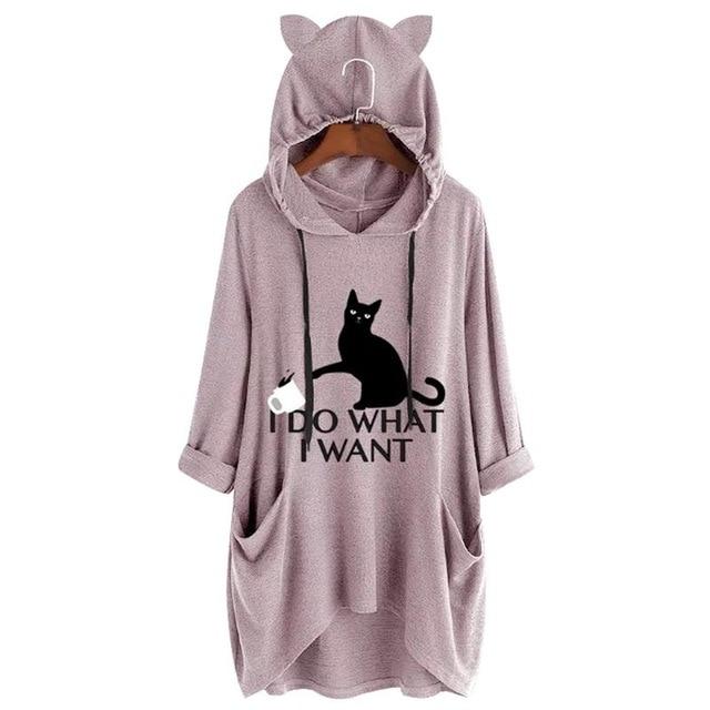 Women's hoodie for cat lovers with the inscription 'I do what I want' and a hood with ears.