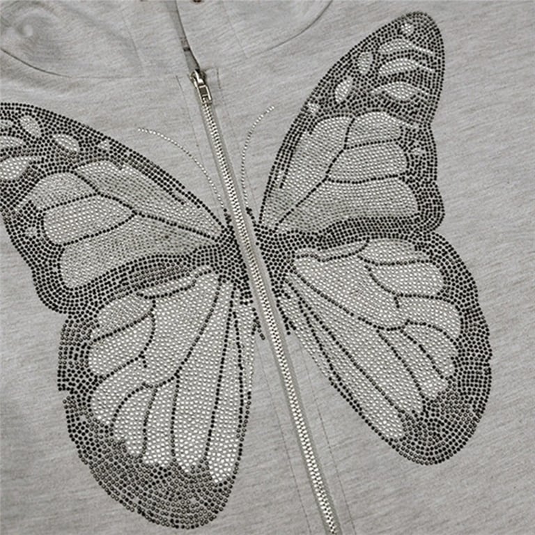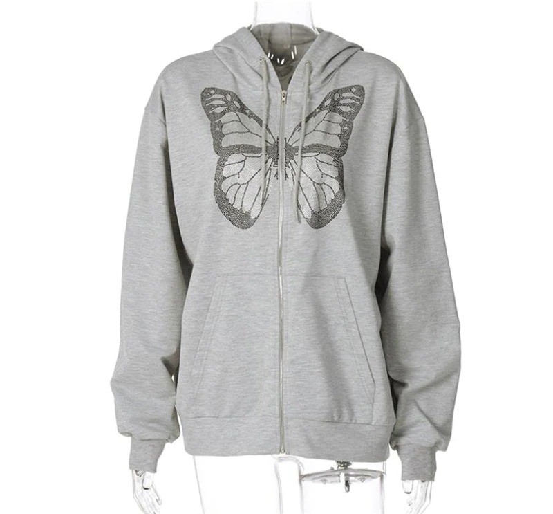 Women's hoodie with butterfly in grey