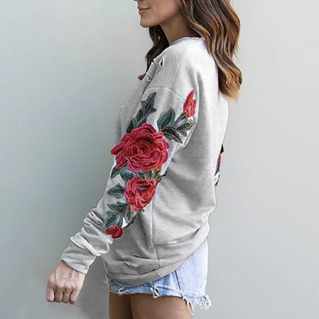 Women's hoodie with rose embroidery and distressing – 5 sizes