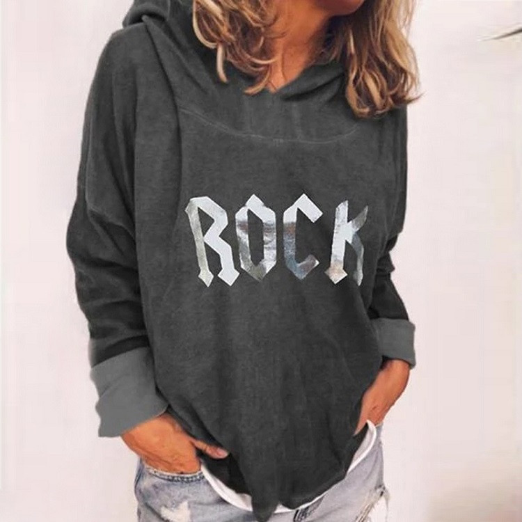 Women's pullover hoodie. With a hood and long sleeves. Loose fit. Print with text on the front. Available in multiple colour options.