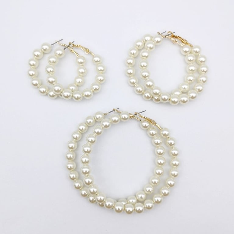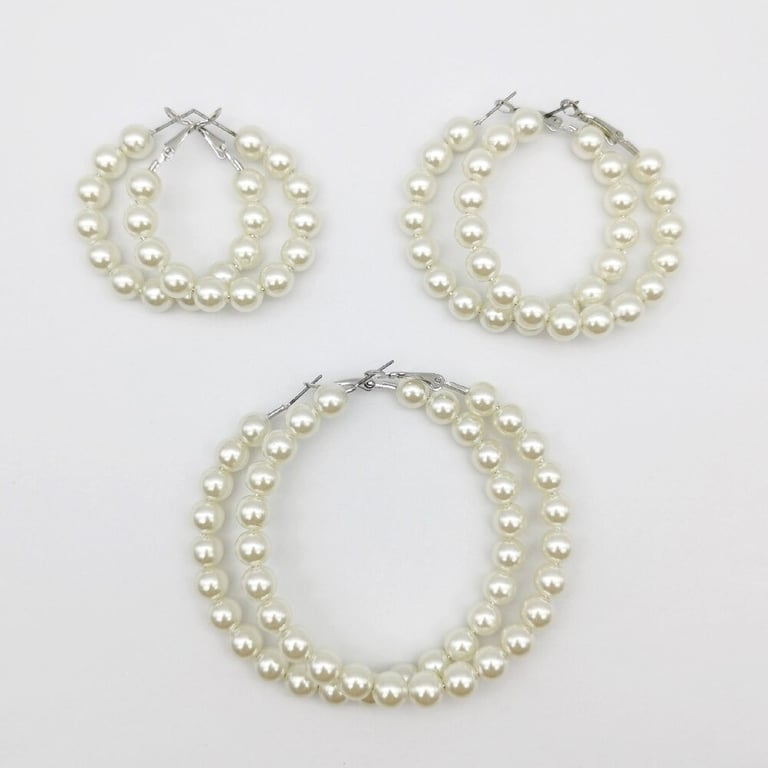 Women's Hoop Earrings with Pearls 3 Pairs