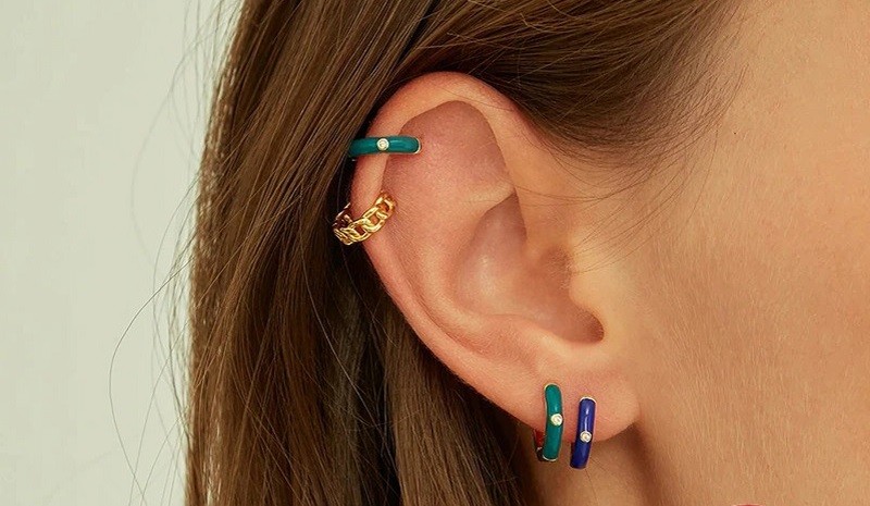 Women's hoop earrings with zircon