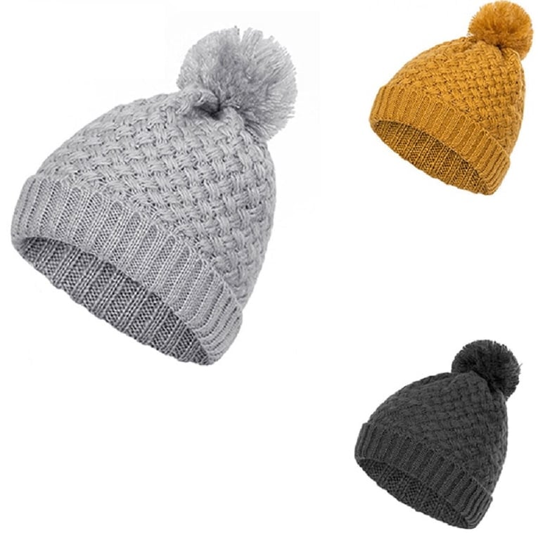 Women's Knitted Beanie with Pom-Pom