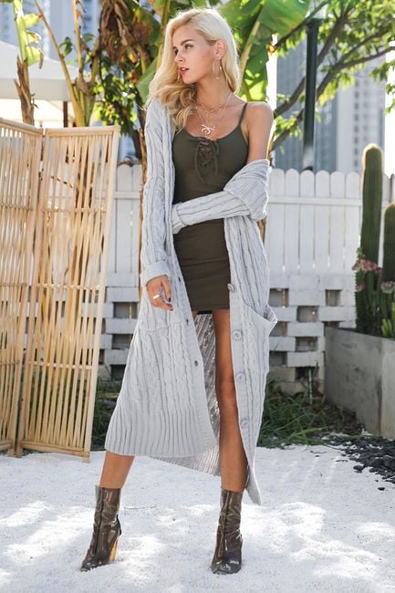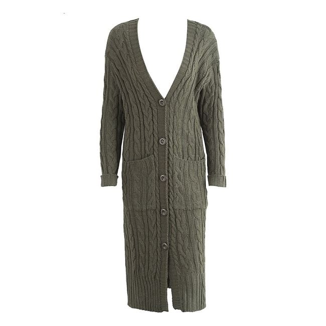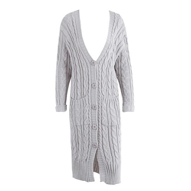 Knitted cardigan with long sleeves, button closure and larger pockets is available in 3 colour options.