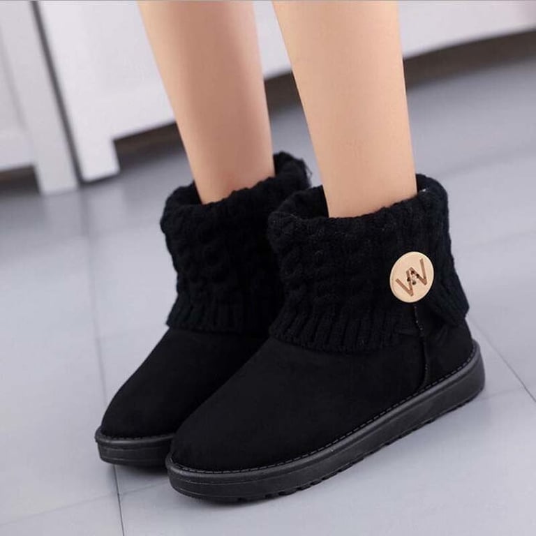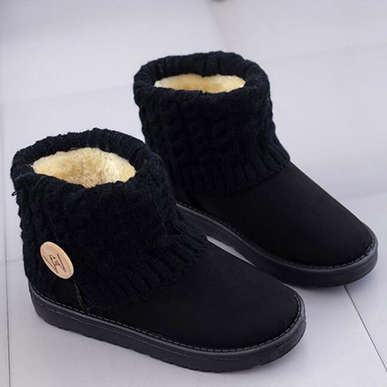 Women's low ankle boots with a rubber sole and a knitted cuff, decorated with a large wooden button. Available in several colour options.