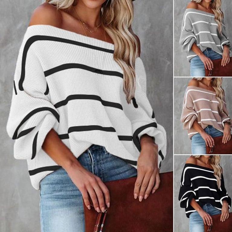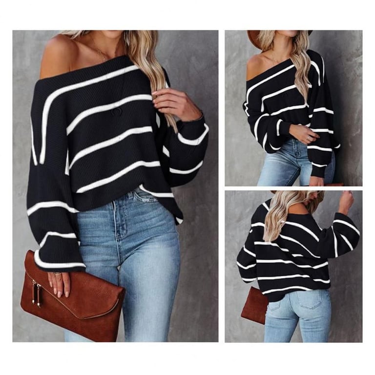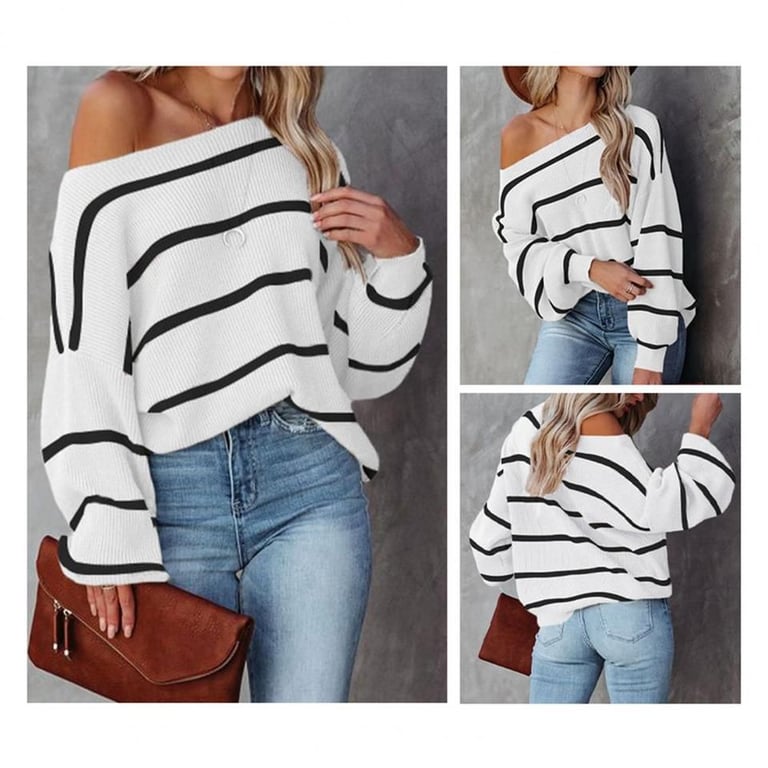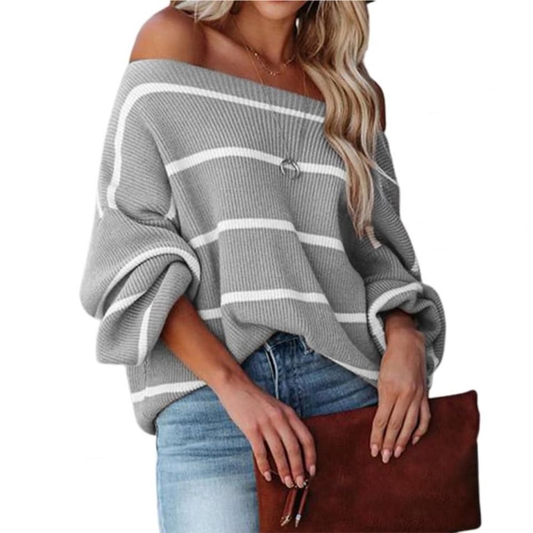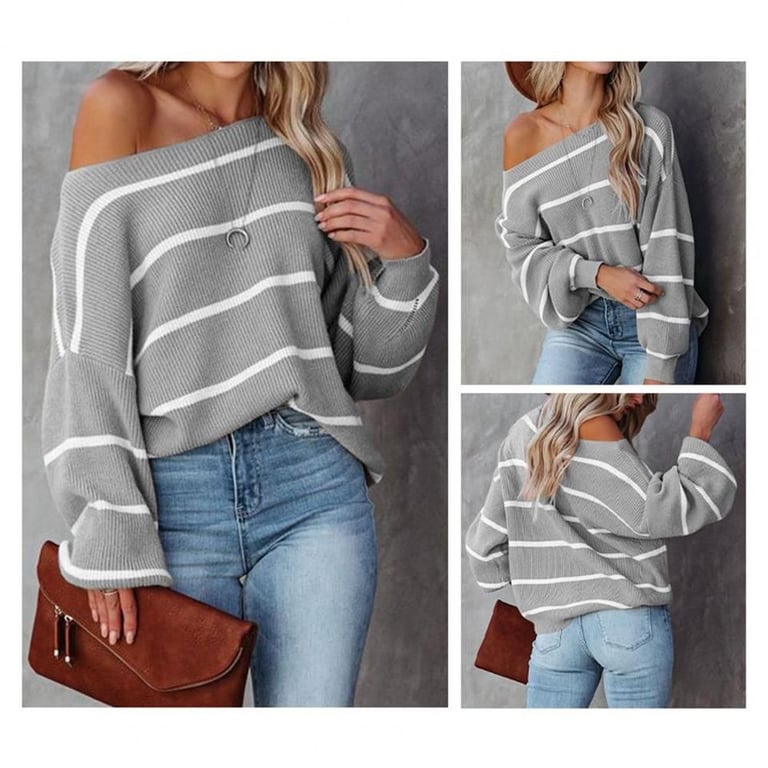 Women's Knitted Striped Sweater with Dropped Shoulders Killy