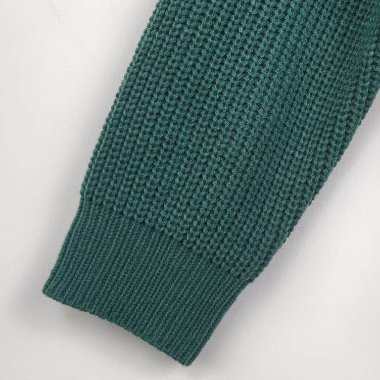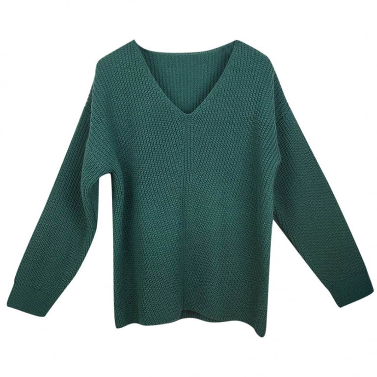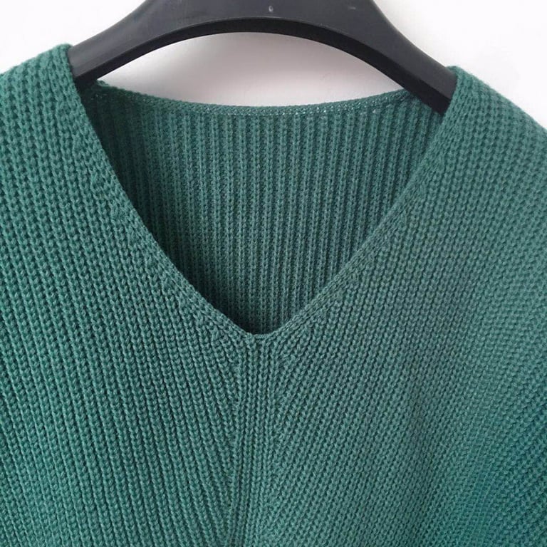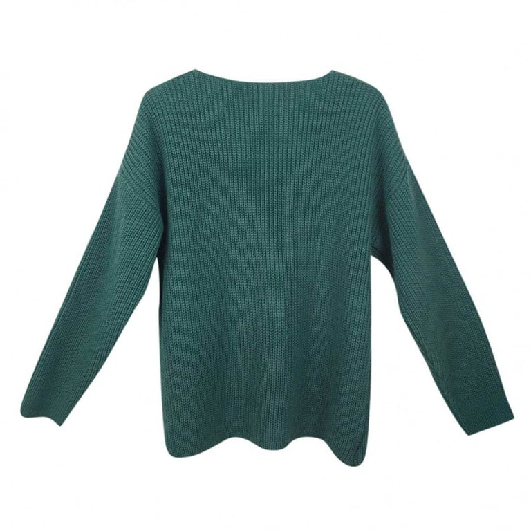 Women's knitted sweater with a V-neck. Loose straight fit with ribbing. Long sleeves.