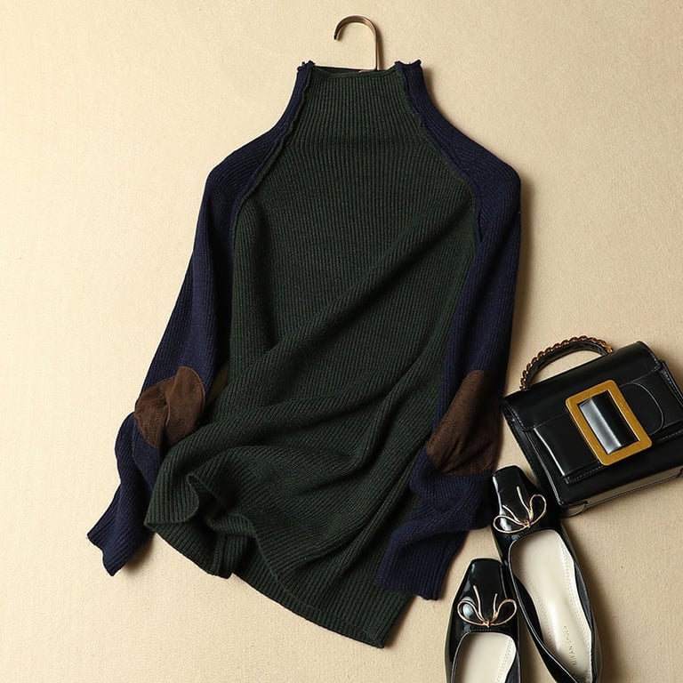 This fashionable knitted cashmere roll neck with elbow patches will add the perfect touch to your outfit!