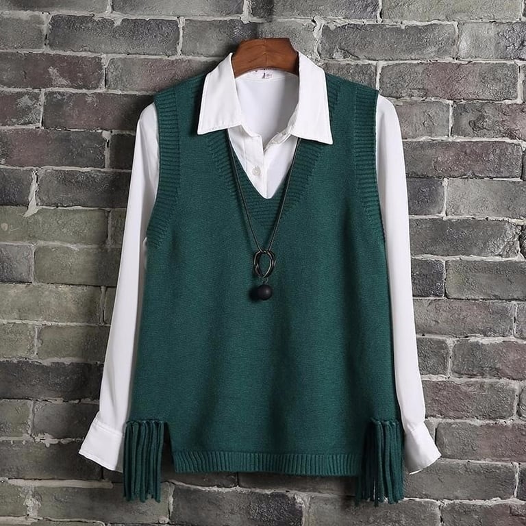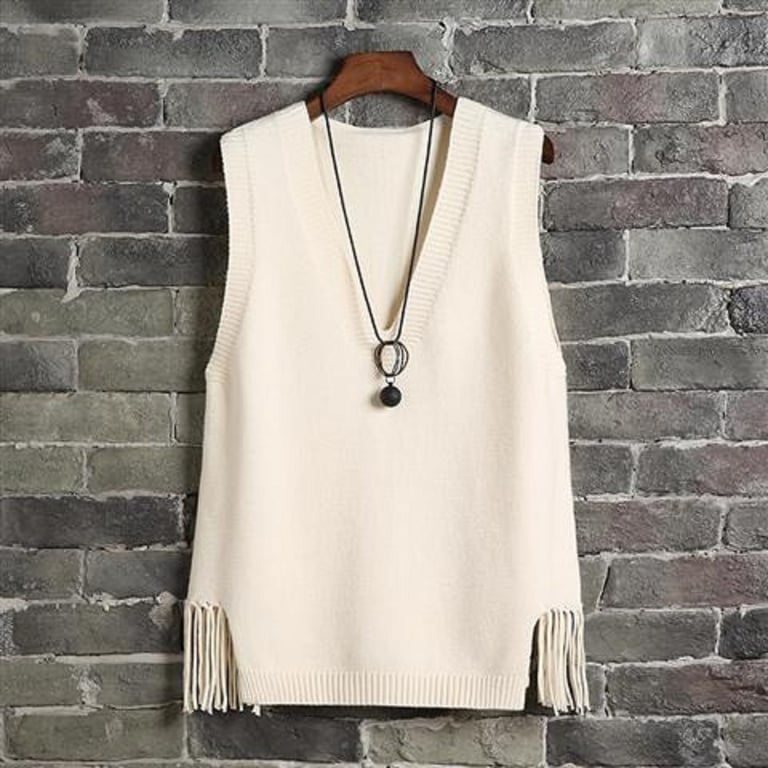 Women's knitted vest with fringes