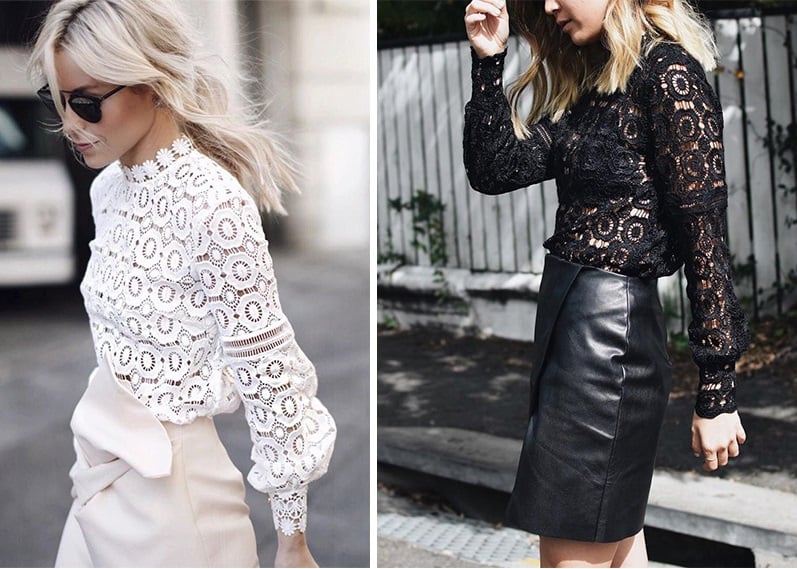 This women's romantic top with long sleeves is made from floral lace. You can choose from white and black colours.