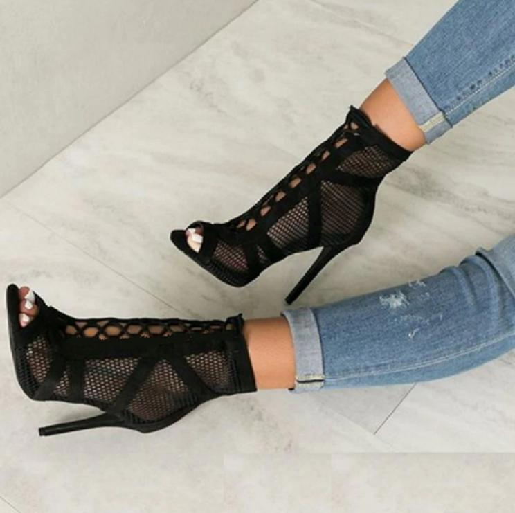You will love these leather sandals with lacing and mesh. The sandals are high up to the ankles.