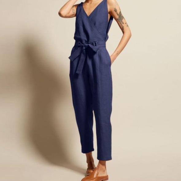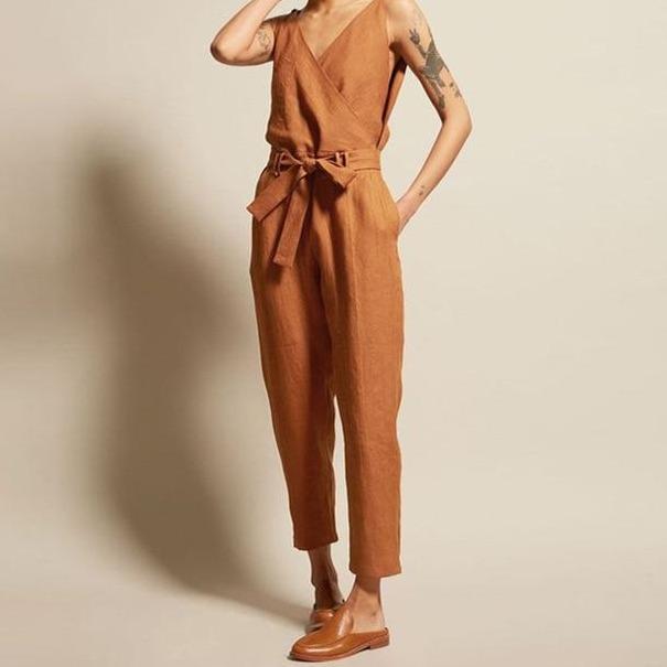 Elegant ladies' long jumpsuit with lacing and a V-neck. Several colour options available.