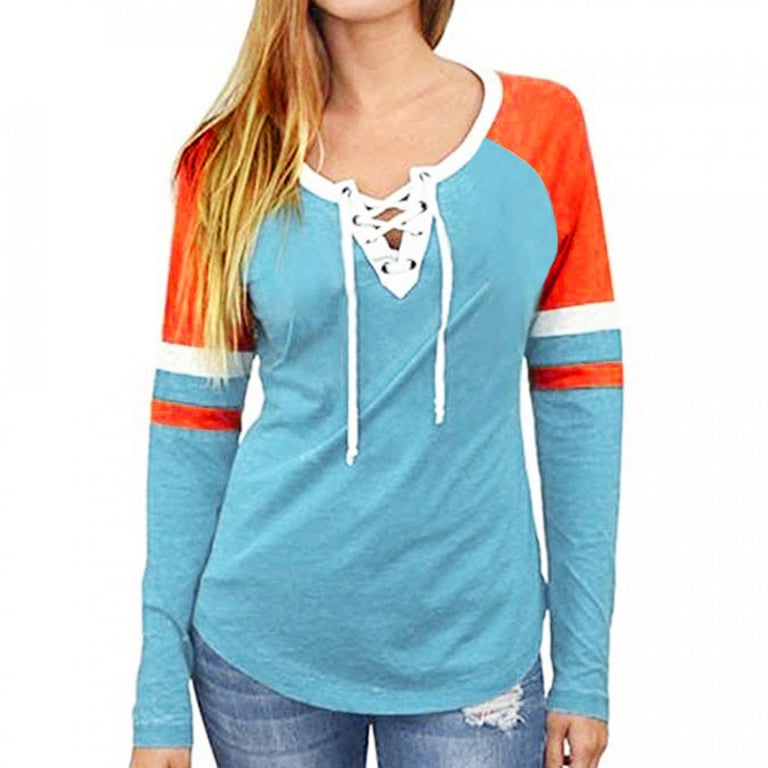 Women's long-sleeve t-shirt. The t-shirt has a loose, comfortable fit and a V-neckline with lacing. Available in several colour options.