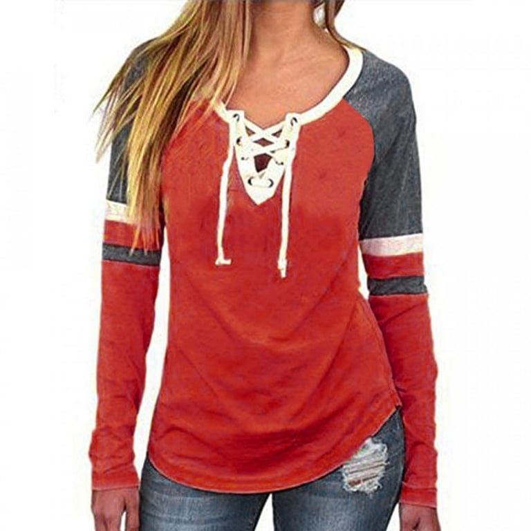 Women's long-sleeve t-shirt. The t-shirt has a loose, comfortable fit and a V-neckline with lacing. Available in several colour options.