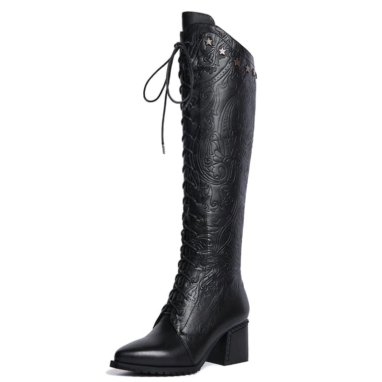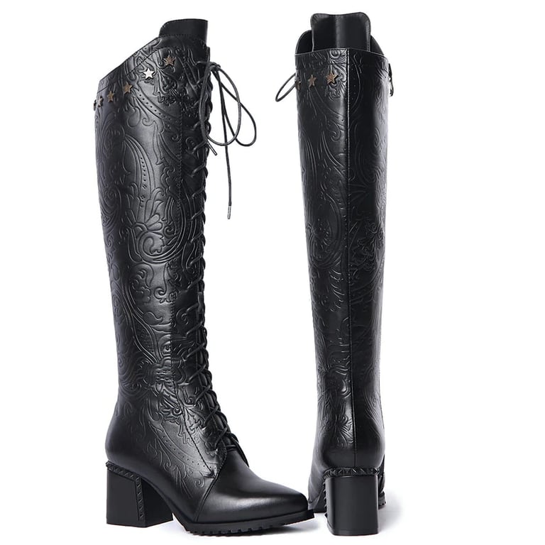 In these boots with stitched logos, you will look fabulous.