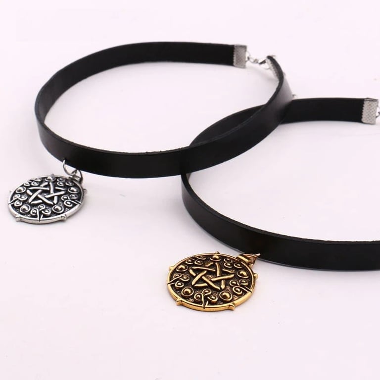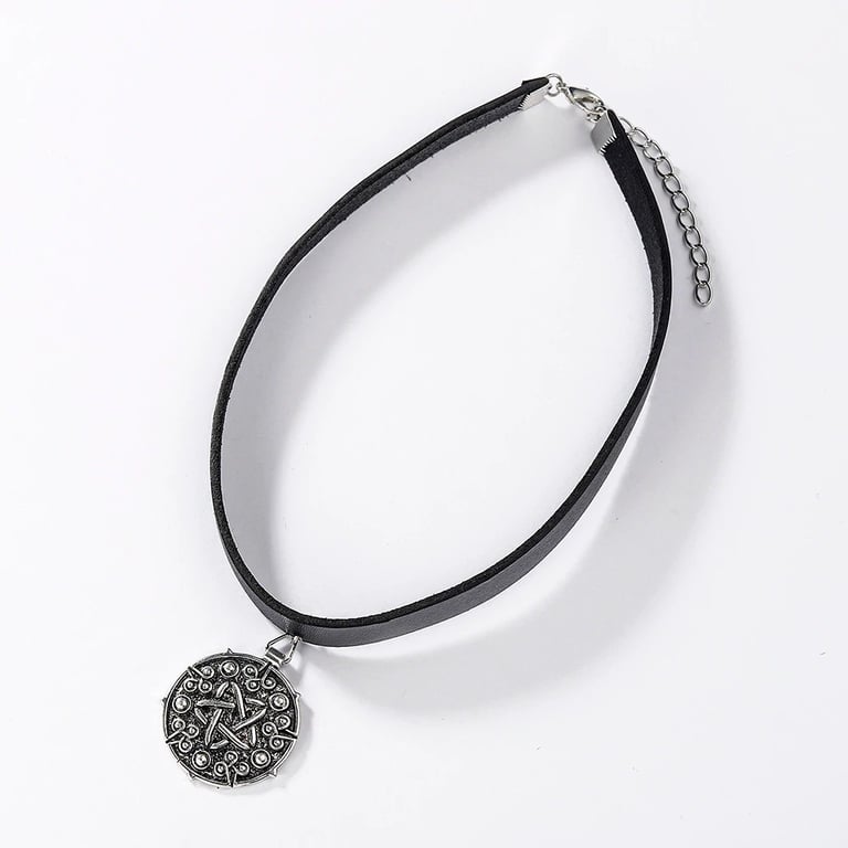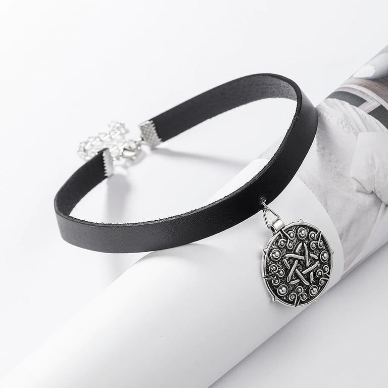 Women's leather choker necklace with pendant