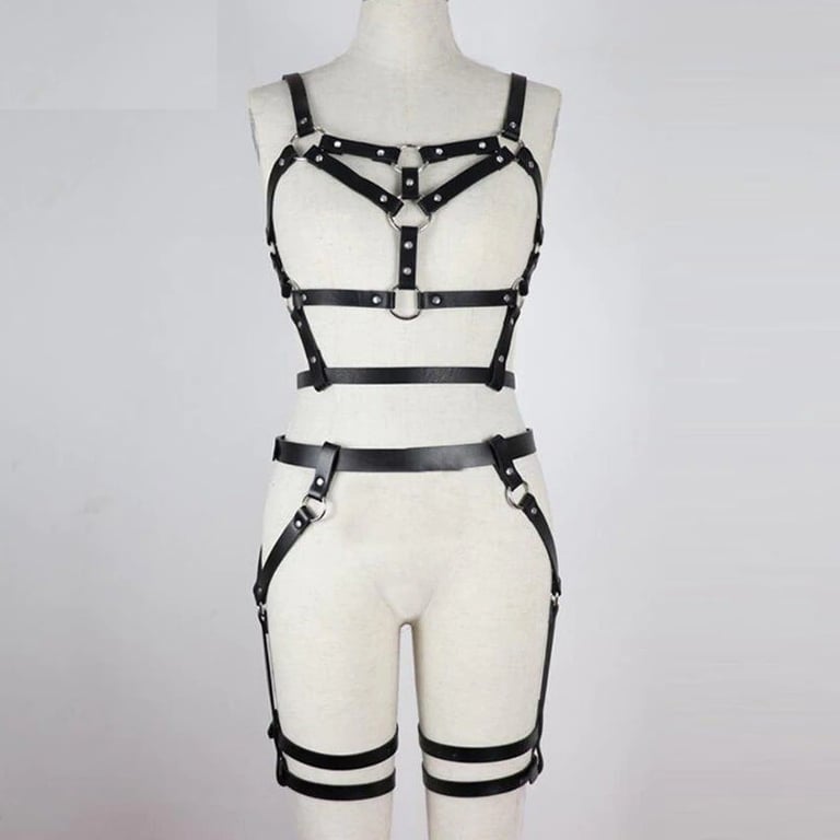 Women's leather harness with garters