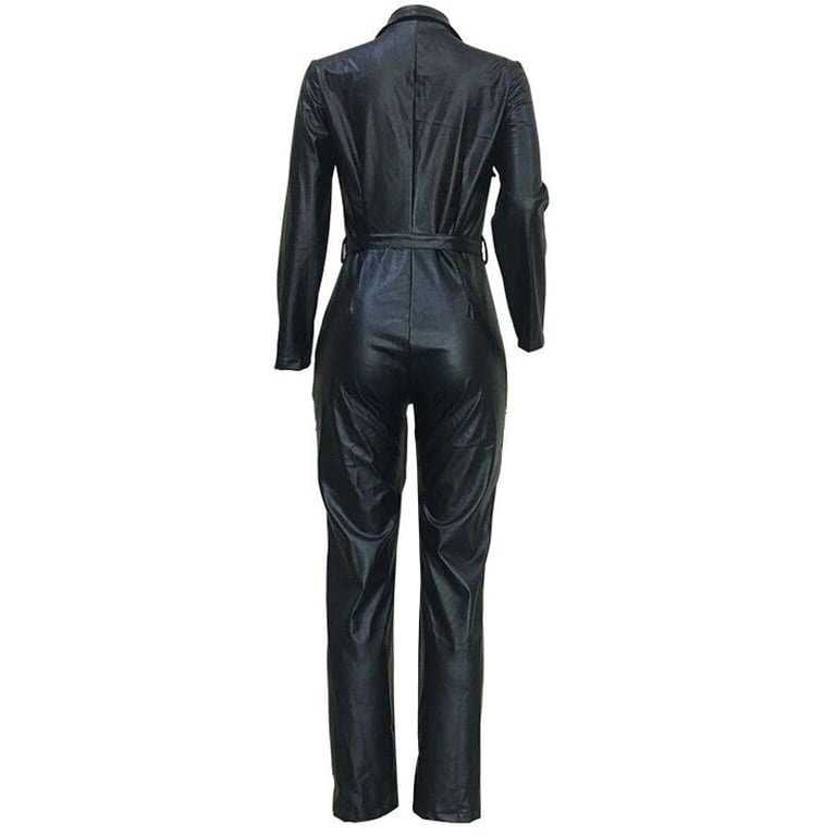 Women's leather jumpsuit with a plunging neckline RomanceRêvée™