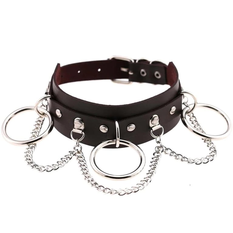 Women's leather necklace with rings and chain