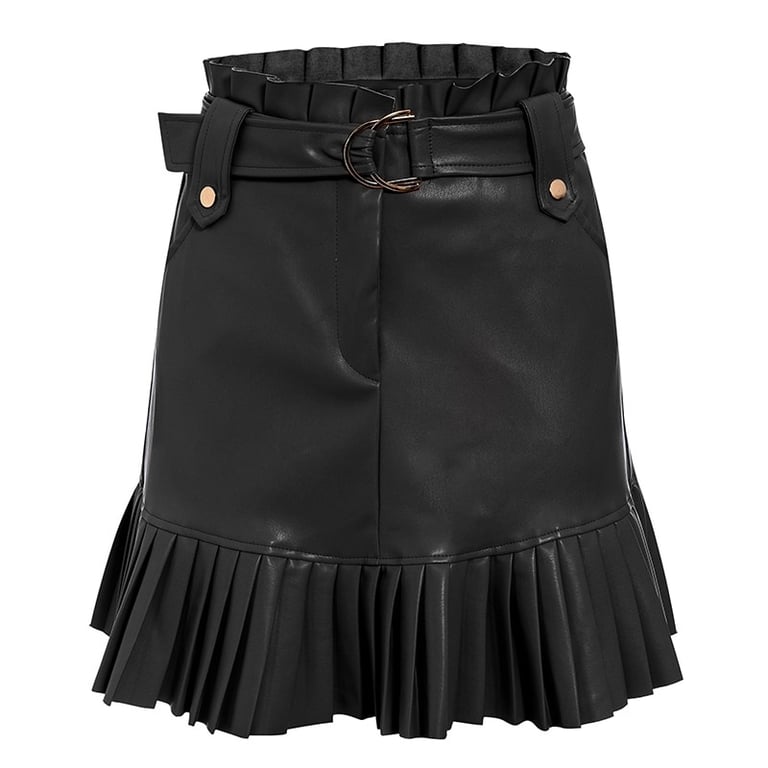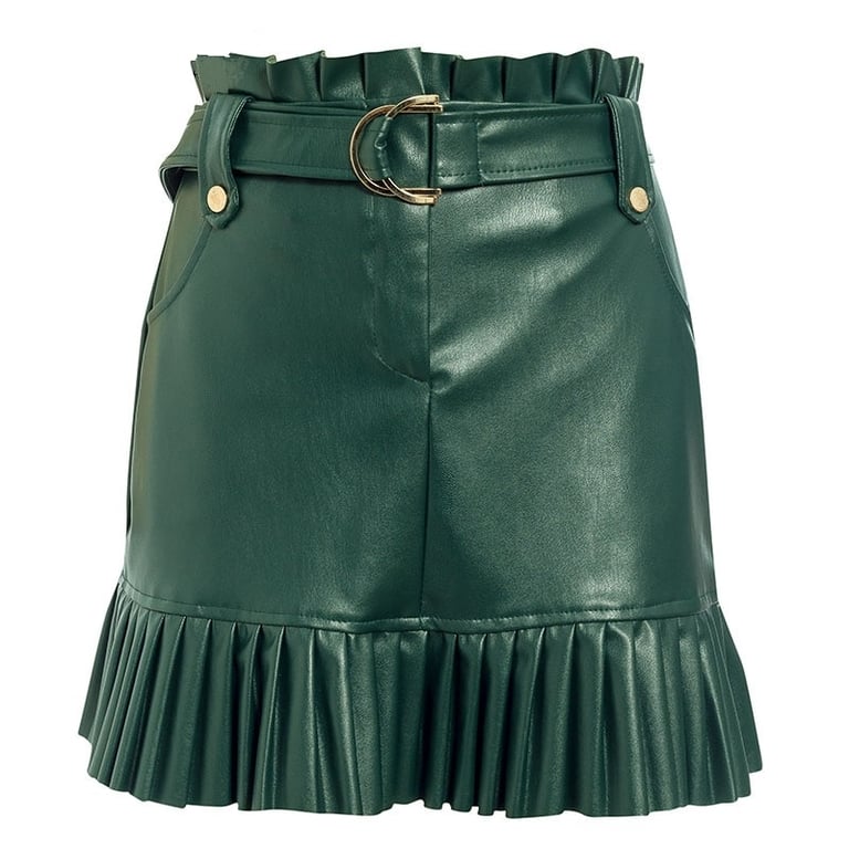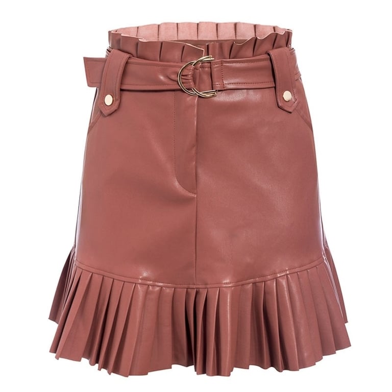 Women's Leather Skirt with Ruffles