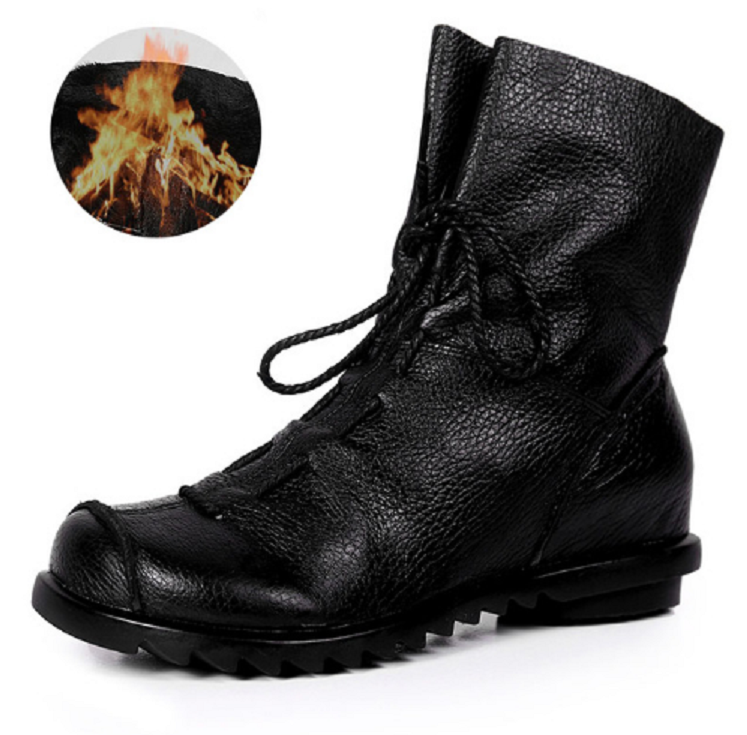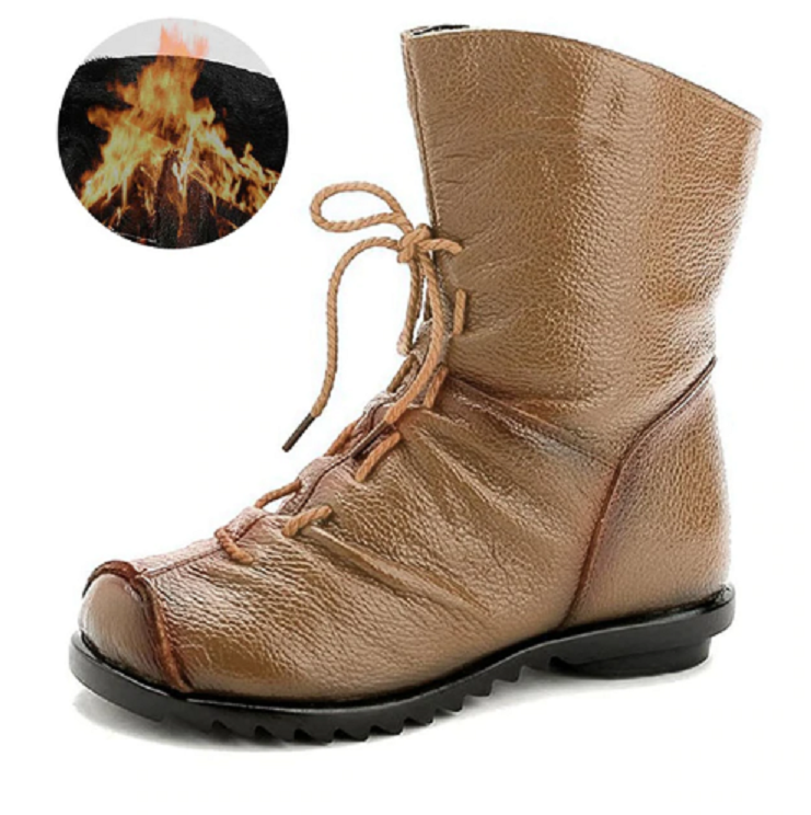 These leather winter boots with fur will keep you warm in cold weather.