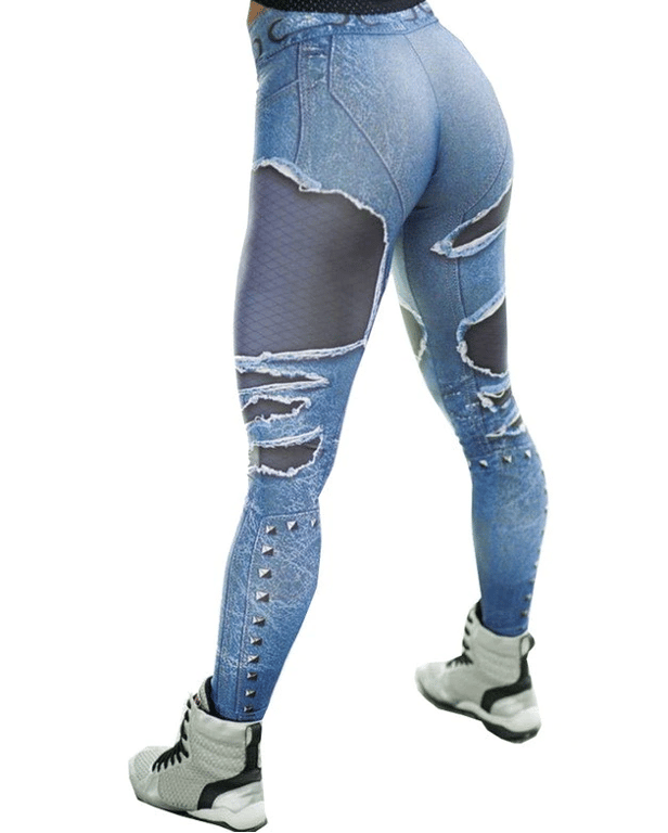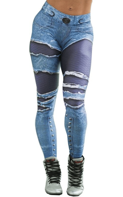 • Stylish women's leggings with an original print of trendy ripped jeans.