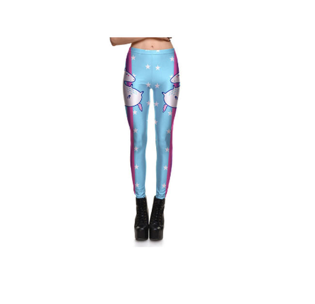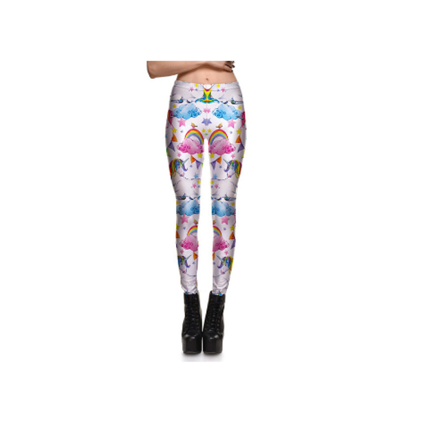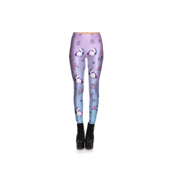 The leggings feature a very stylish unicorn print, suitable for everyday wear, relaxation, meditation, and sports activities.