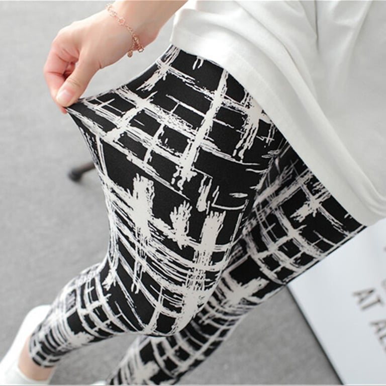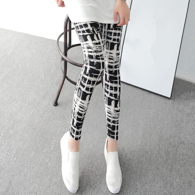 Beautiful black leggings with a white grid print.