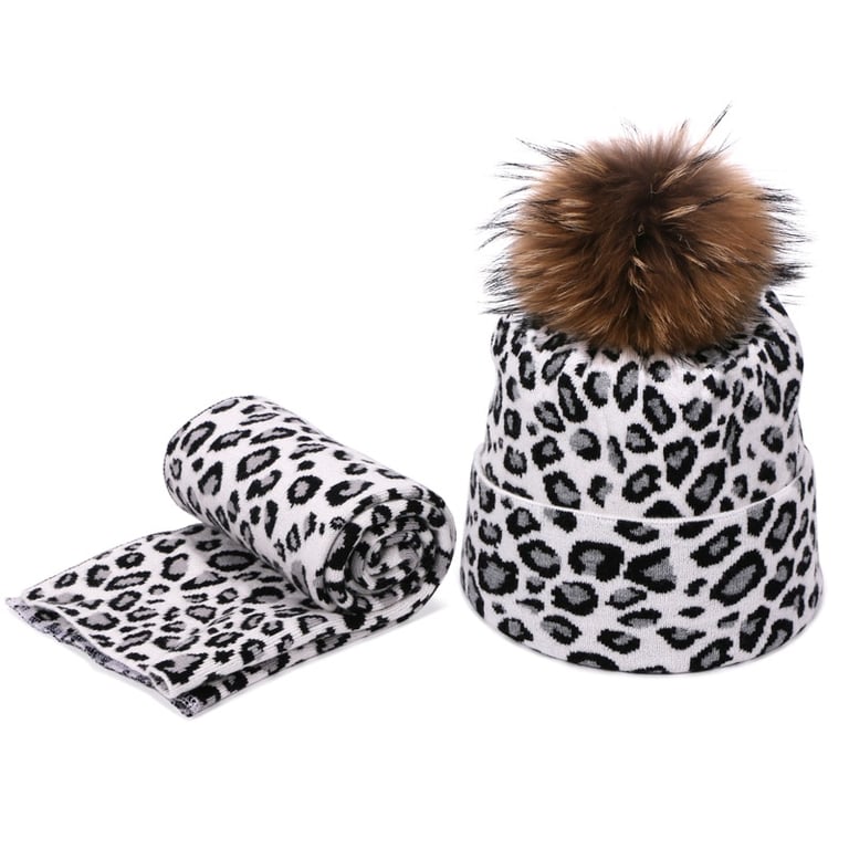 Women's Leopard Beanie with Scarf