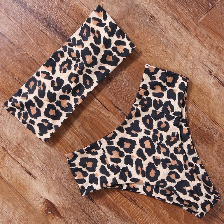 Women's leopard print high-waisted bikini.