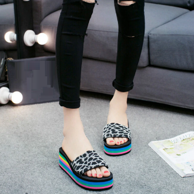 These leopard print slippers on a colourful platform are very high quality and stylish.