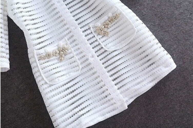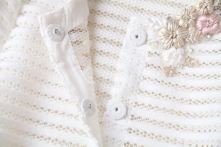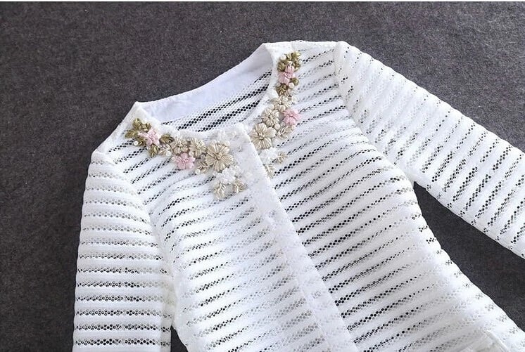 This women's lightweight jacket with embroidered flowers is perfect as an accessory over dresses.