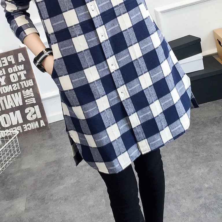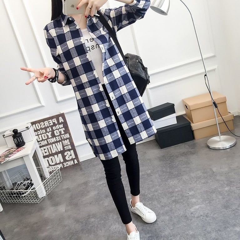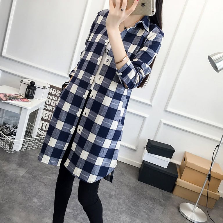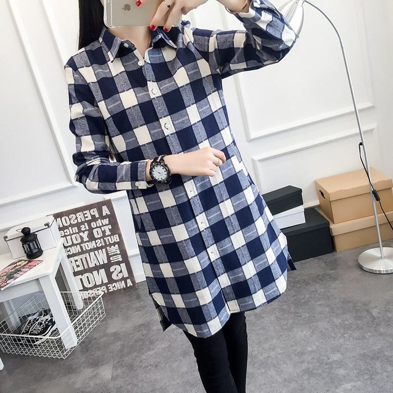 Women's long checked shirt Vinty – blue