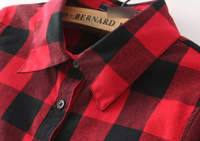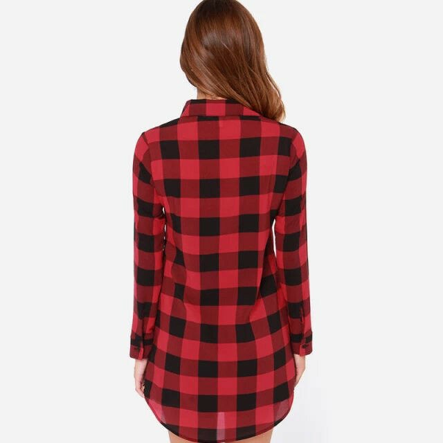 Women's Long Checkered Shirt with Long Sleeves