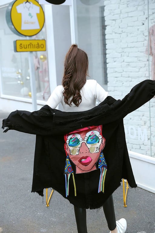 This women's coat with a large face on the back will surely be loved by young ladies.
