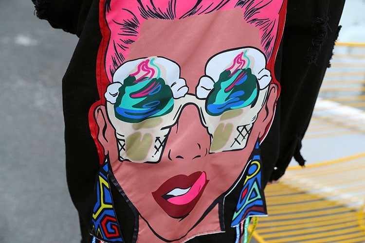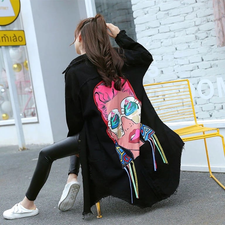 This women's coat with a large face on the back will surely be loved by young ladies.