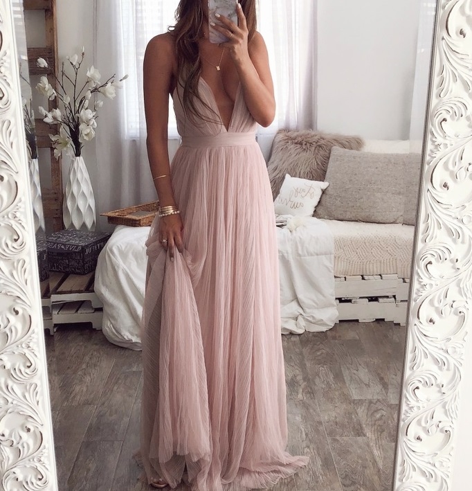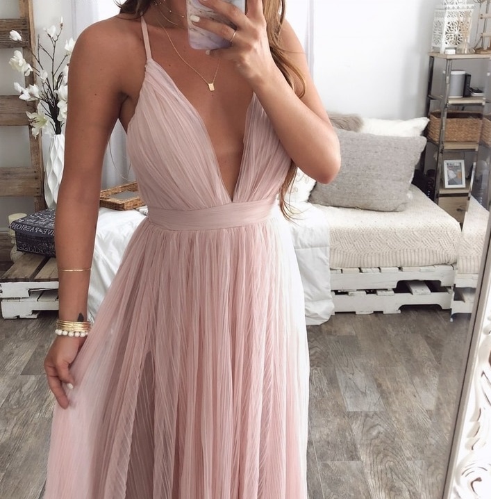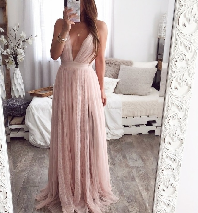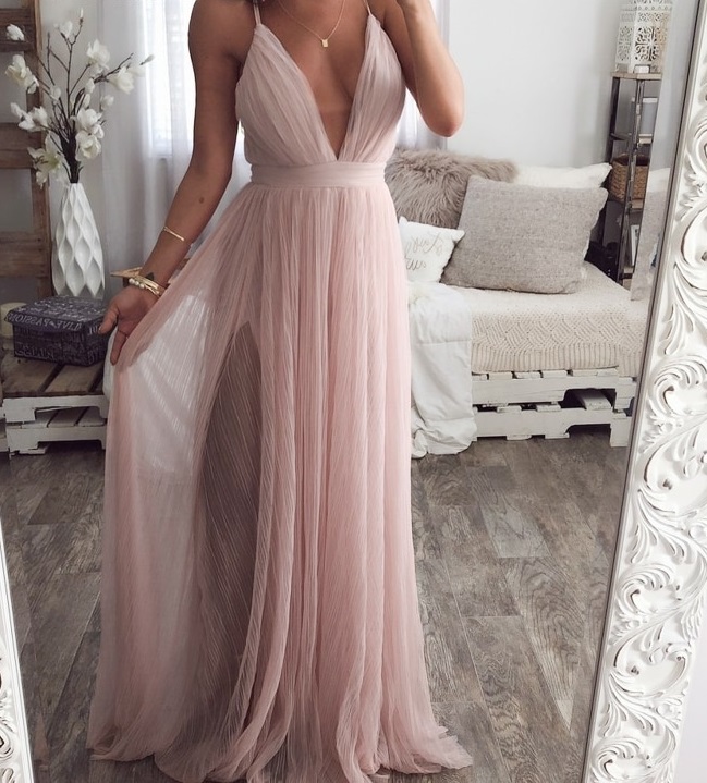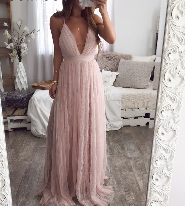 Women's Long Dress with a Deep Neckline