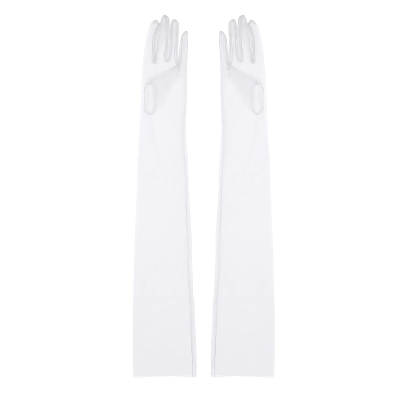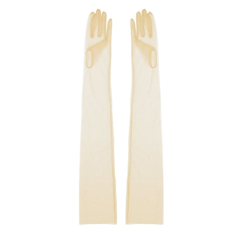 Long gloves made from sheer tulle material.