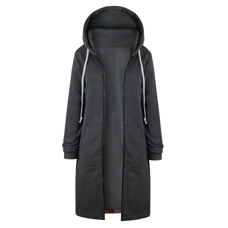 Women's hoodie with a hood and long sleeves. Long loose fit with a zip fastening - Available in multiple colour options.