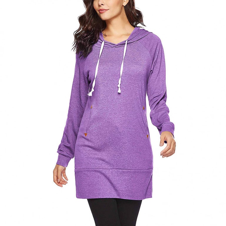 Women's hoodie with a hood and long sleeves. Loose, longer fit with a kangaroo pocket. Available in multiple colour options.