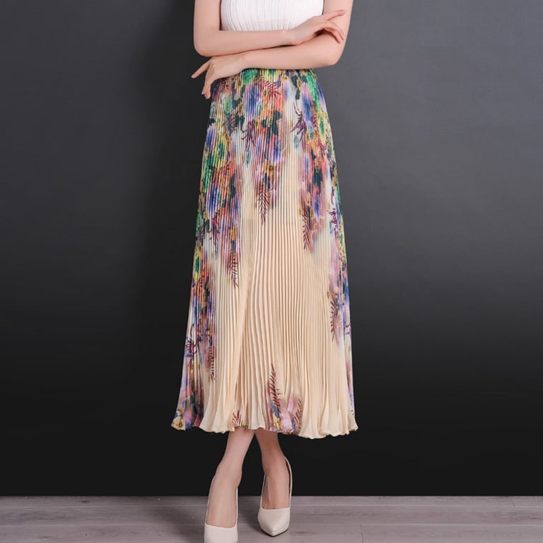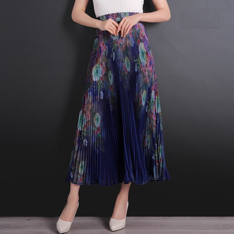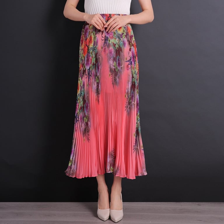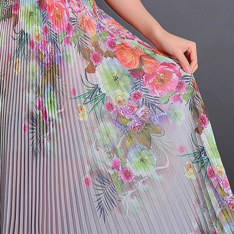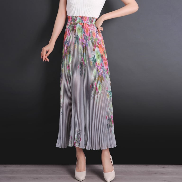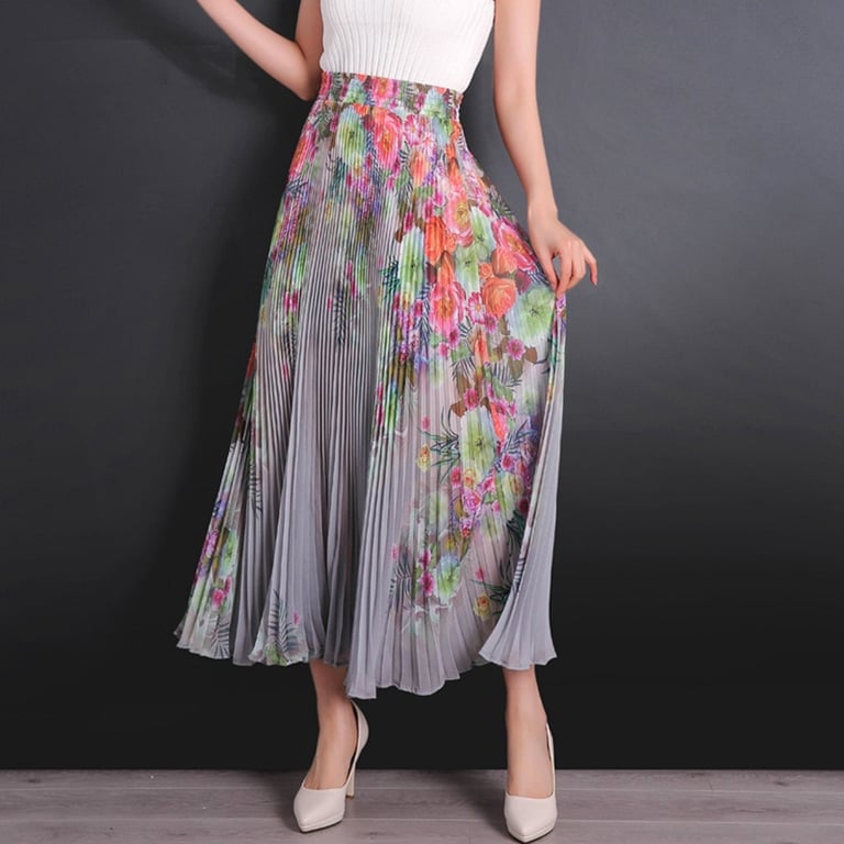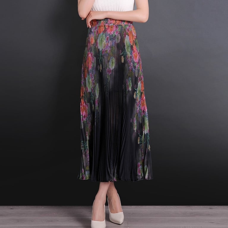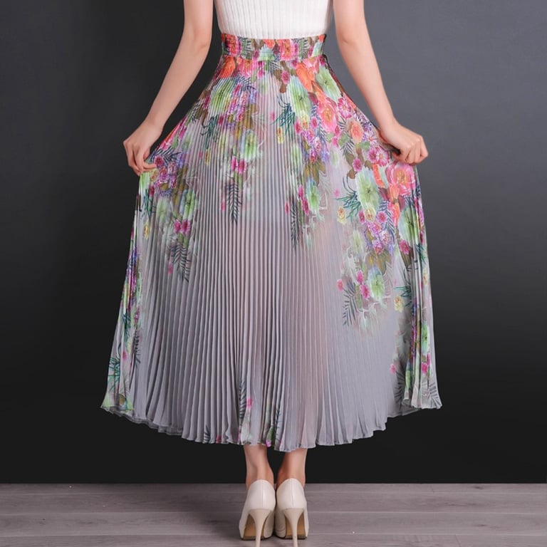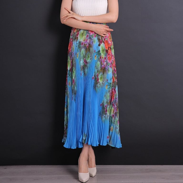 Women's Long Pleated Skirt with Flowers