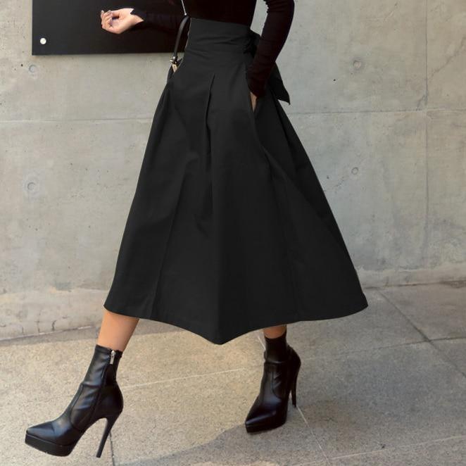 Elegant long women's skirt with high waist and bow in three colour variations.