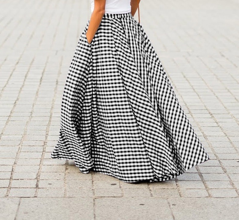 Women's Long Skirt with Check Pattern