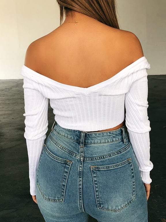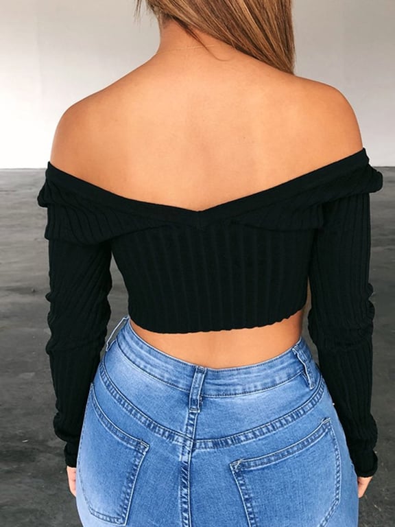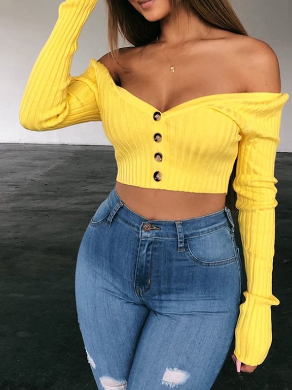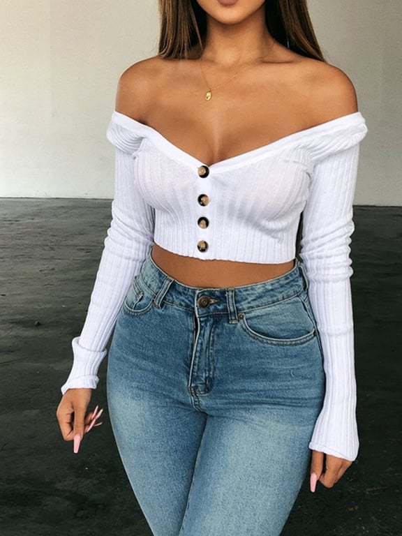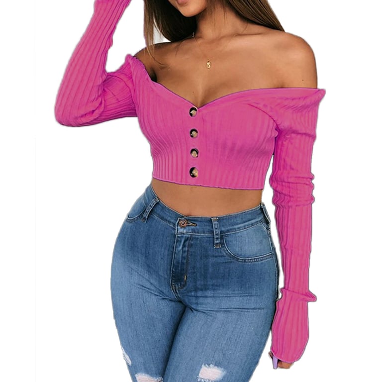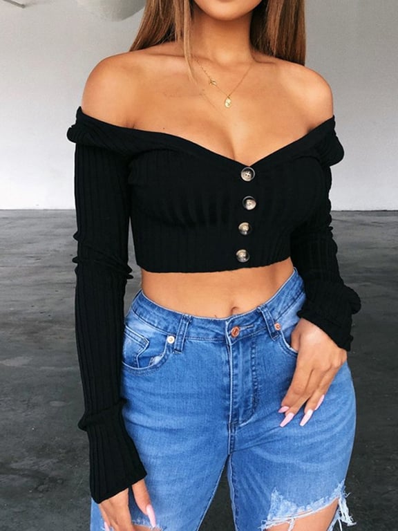 Women's Long Sleeve Crop Top with Buttons