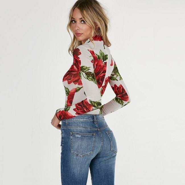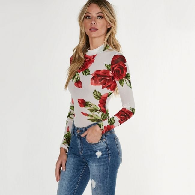 The t-shirt is designed as a bodysuit, so it won't ride up on you.