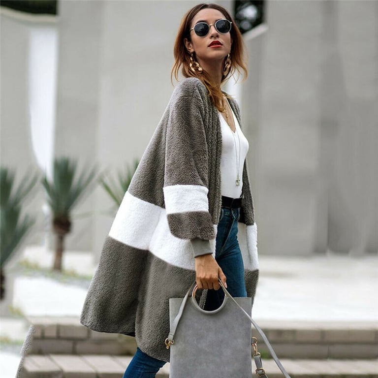 Stylish longer-length sweater to complement your outfit for cold weather.